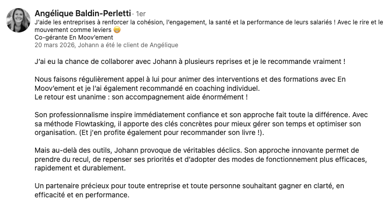 Faites intervenir Johann Yang-Ting, expert en organisation et créateur de Flowtasking™, pour des workshops et conférences en gestion du temps, productivité et organisation du travail.
